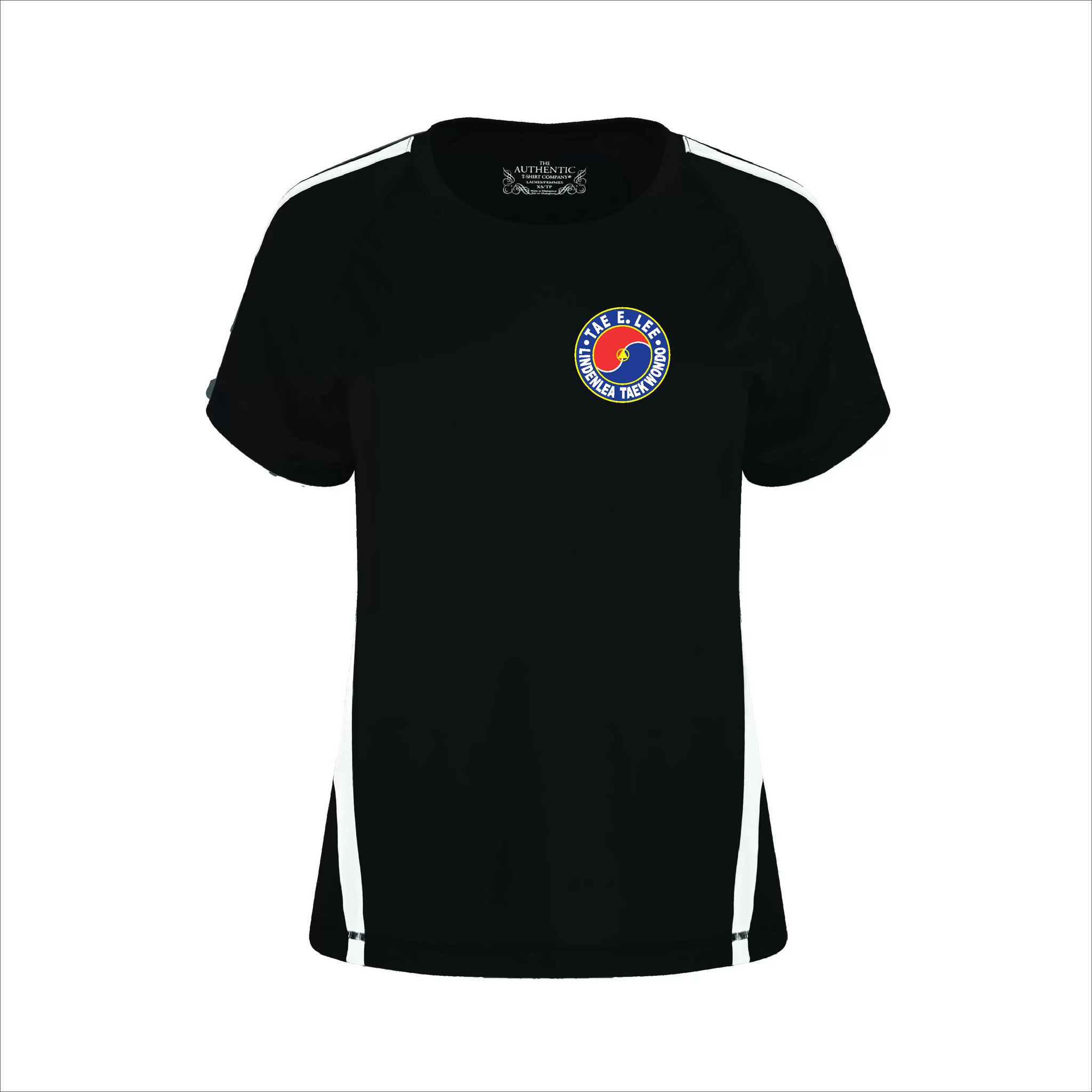 Comes with the Tae E. Lee logo printed on the front left chest and the Lindenlea Taekwondo logo printed on the back of the shirt.